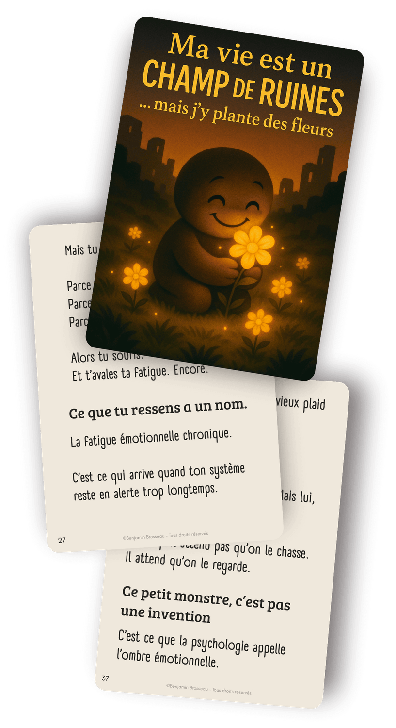 "Ma vie est un champ de ruines… mais j’y plante des fleurs", c’est un refuge au format numérique, un livre de 250 pages à lire quand tout déborde.