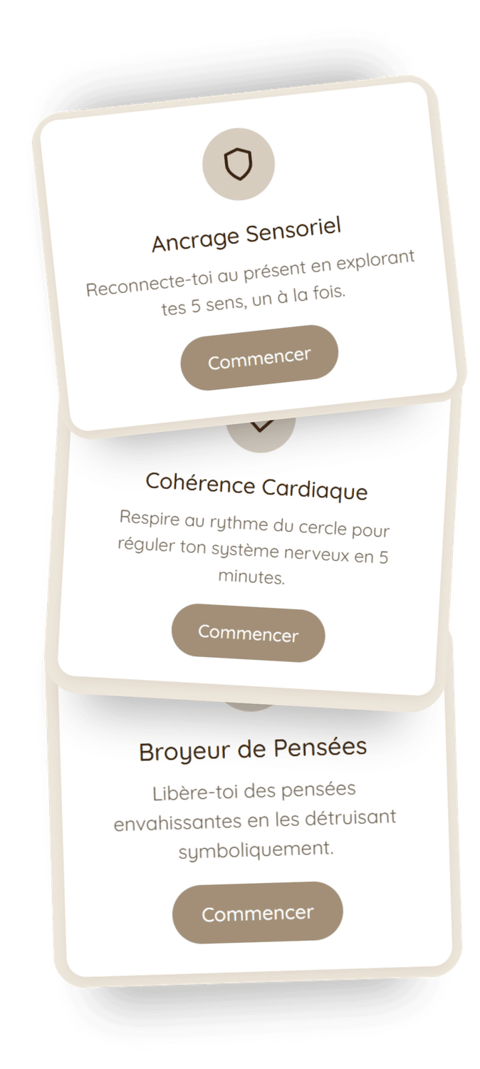 et des espaces de recentrage conçus pour t’aider même en pleine surcharge mentale.